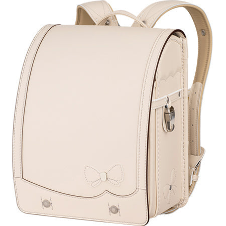 リボンを描いたデザインステッチで、スイートな可愛らしさを表現したランドセル。軽量人工皮革を採用し、軽やかに背負うことができます。