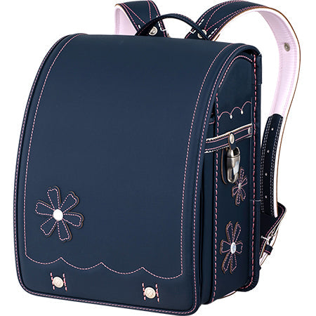 コスモスのモチーフと波型のステッチで、上品な可愛らしさを表現。幸せを運ぶクローバーやお花のカシメなど、細かな部分にも可愛らしさを詰め込みました。